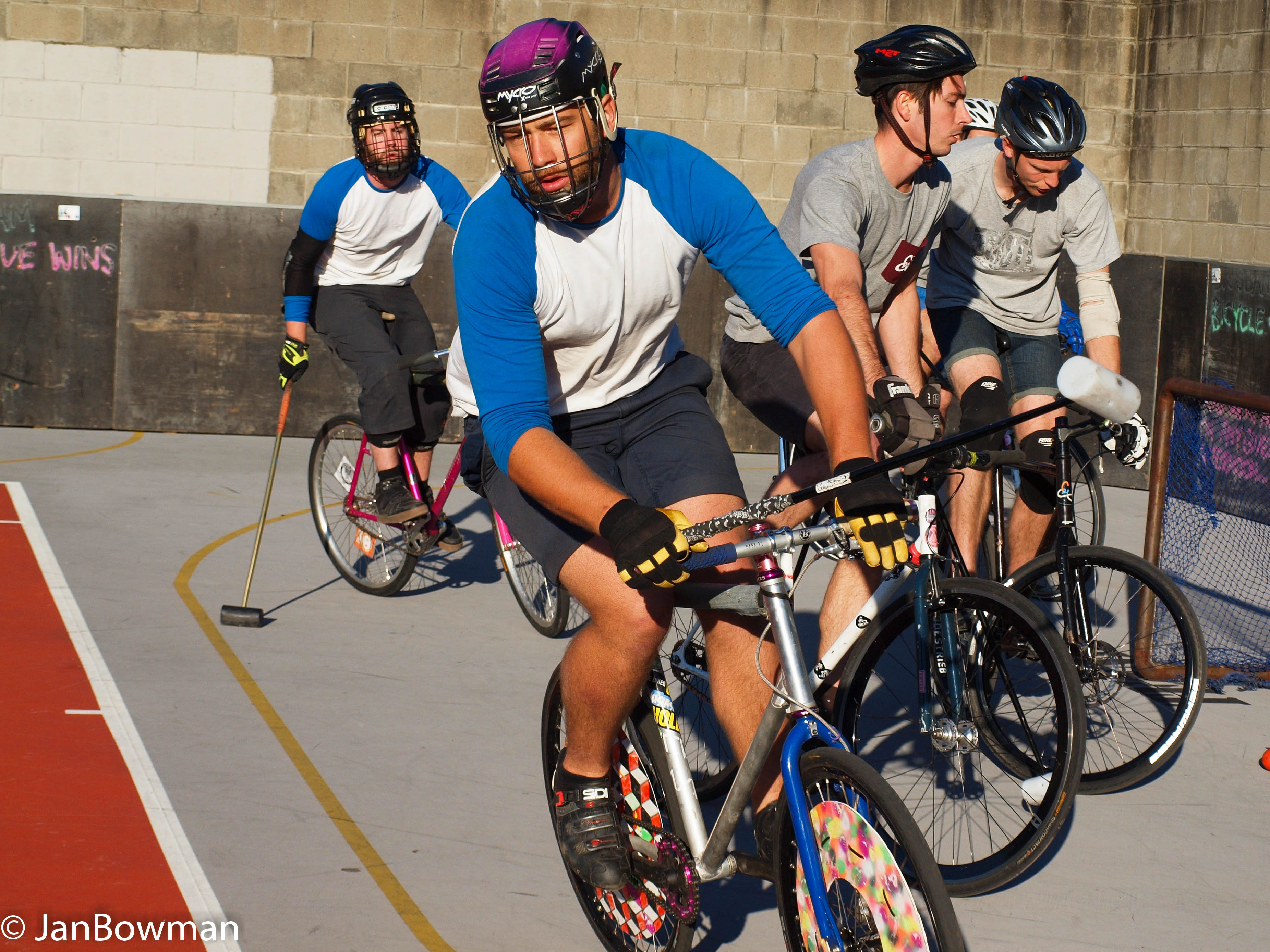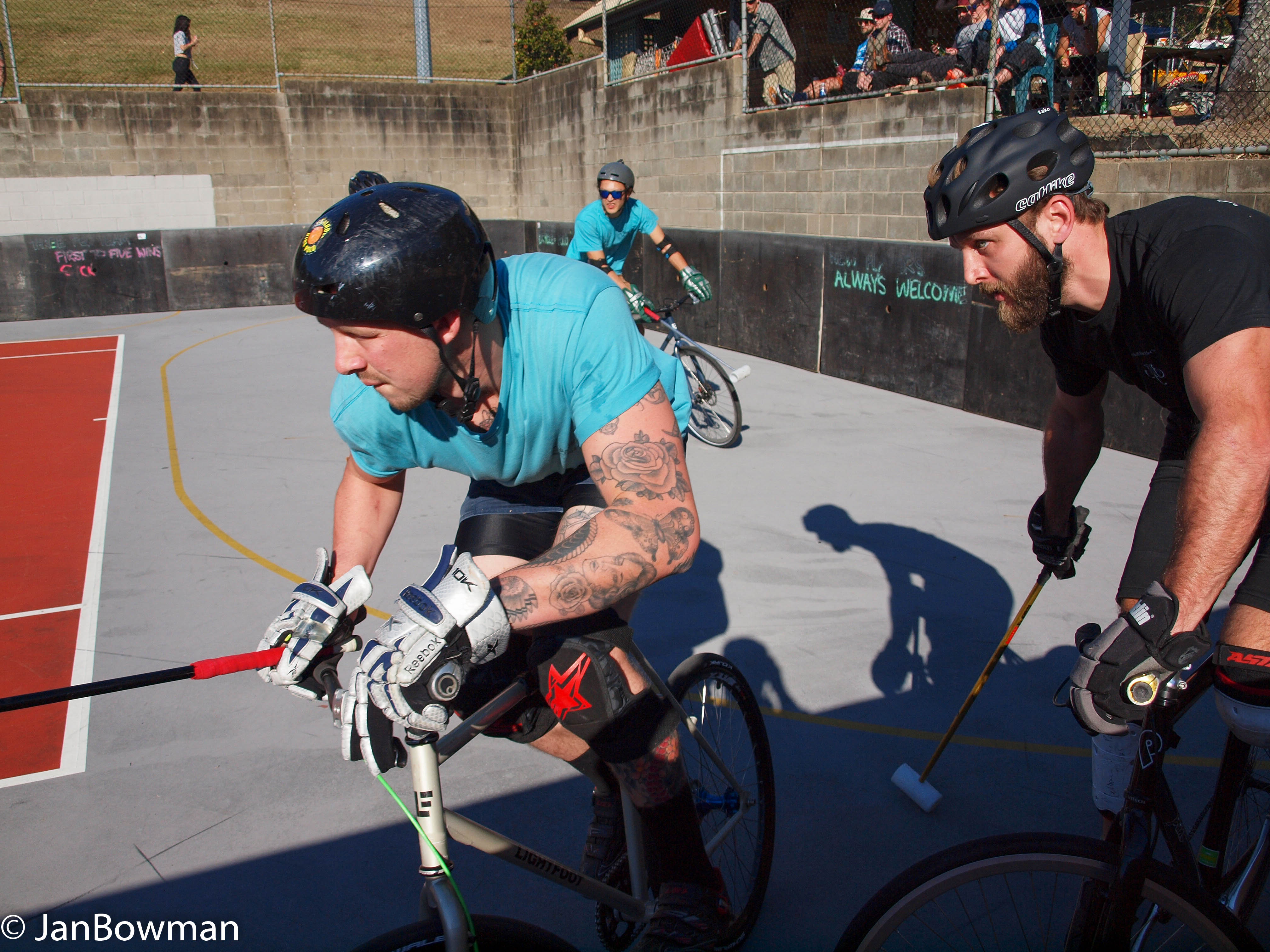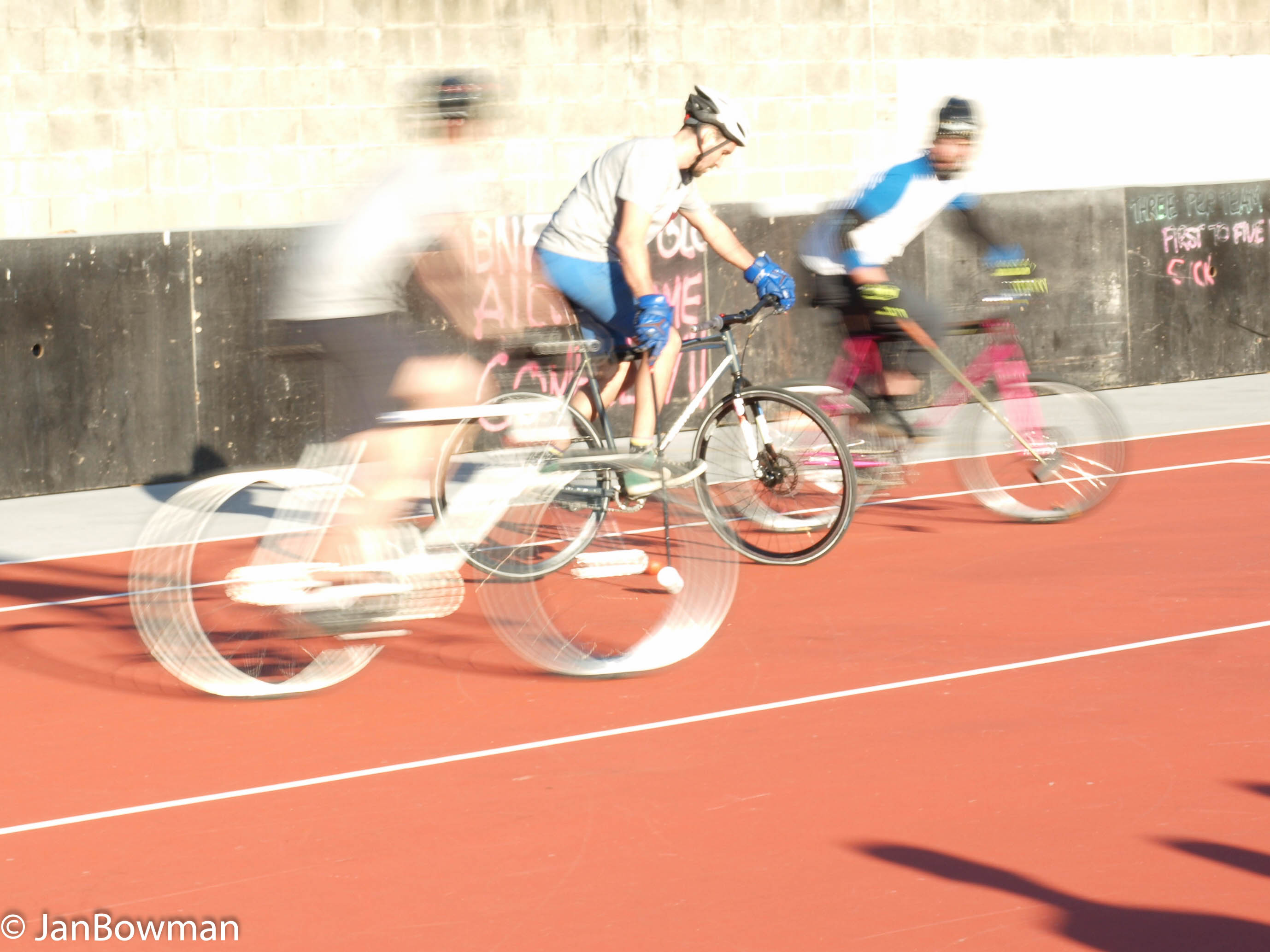 My thanks to Ollie, Max Newstead, Madeline Elise, Leon Cameron and others for sharing their love of bike polo with me; they can count me as a convert, at least as a spectator.
